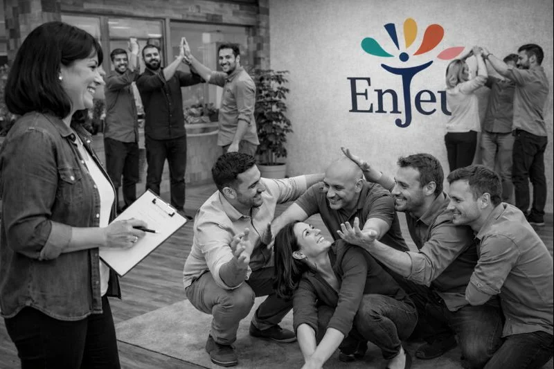 Chez EnJeu nous sommes convaincus que les compétences comportementales et relationnelles — écoute, confiance, adaptabilité, coopération — ne s’apprennent pas dans un PowerPoint.